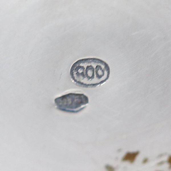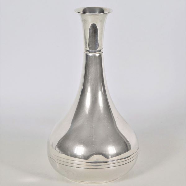 Piccolo vaso ad anfora in argento cesellato, due ammaccature, gr. 295