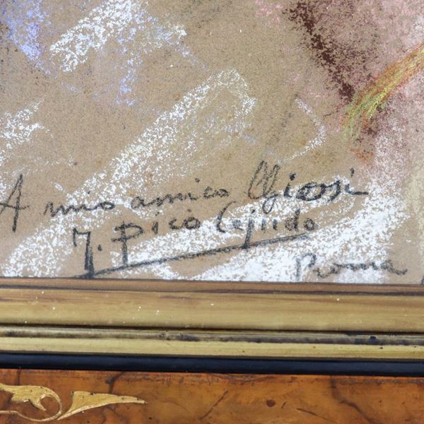 Firmato e datato Roma 1895. "Ragazza con scialle bianco", pastello su cartone