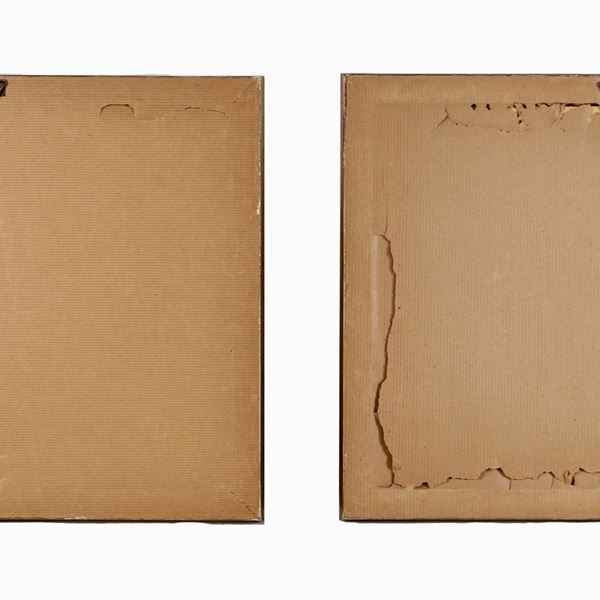 cornici in legno dorato e passepartout, cm 17 x 23 ciascuno.