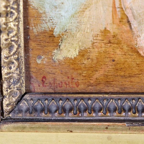 "Ritratto di giovane donna con collana", piccolo dipinto ad olio su tavoletta. Reca la firma di Gaetano Esposito