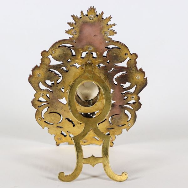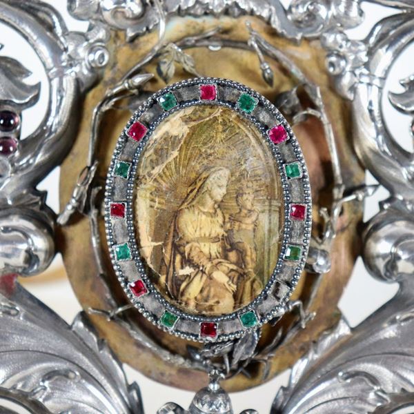 Portareliquie romano in argento e metallo dorato, cesellato e sbalzato a volute floreali con stemma a rilievo di Papa Leone XIII e applicazioni [..]