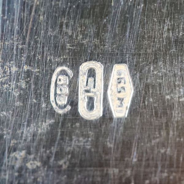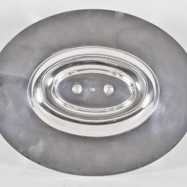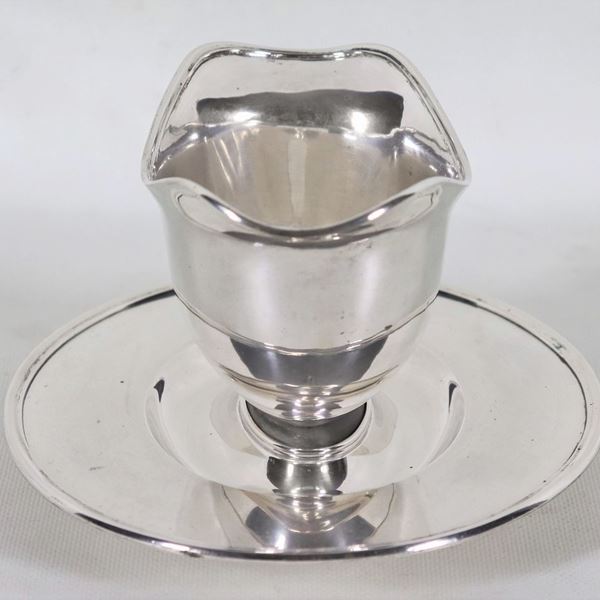 Salsiera a barchetta in argento con bordi sbalzati, gr. 570