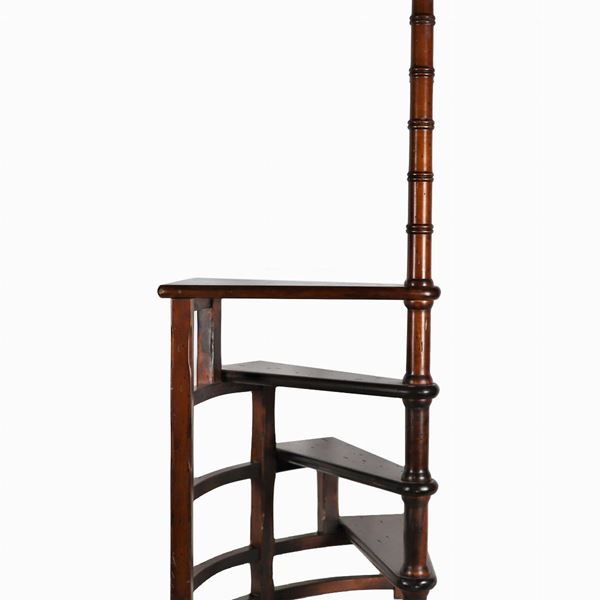 Scaletta da biblioteca in mogano con quattro gradini e montante centrale tornito