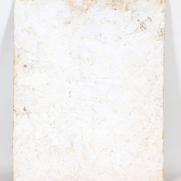 "Madonna in trono con Bambino e Santi", dipinto ad olio su placca in pietra
