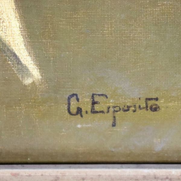 Il dipinto reca una firma G. Esposito, cornice in legno dorato e intagliato, cm 43,5 x 35.