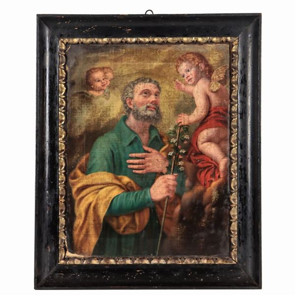 "San Giuseppe con angioletti", piccolo dipinto ad olio su tela