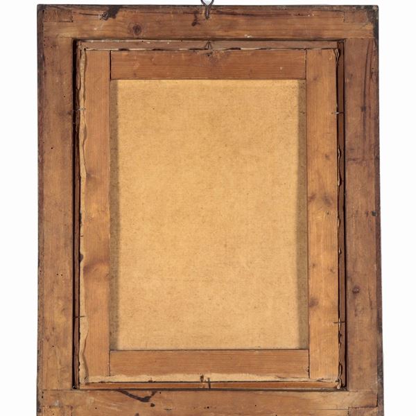 cornice in legno ebanizzato. Lievi difetti alla tela, cm 38 x 30.