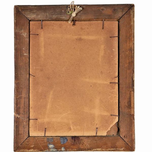 antica cornice dell'epoca in legno dorato. Vari difetti, cm 27 x 21.