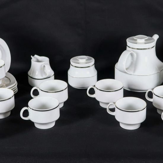 Servizio da tè in porcellana bianca tedesca con filettature argentate, (15 pz)