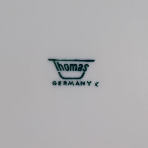 composto da: 12 fondine di cui una con lieve sbeccatura al bordo, 12 piatti piani, 12 piatti piccoli, 1 insalatiera, 1 zuppiera, 1 burriera, 1 piatto rettangolare e 1 piatto tondo da portata.