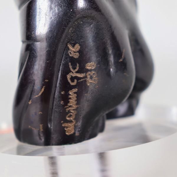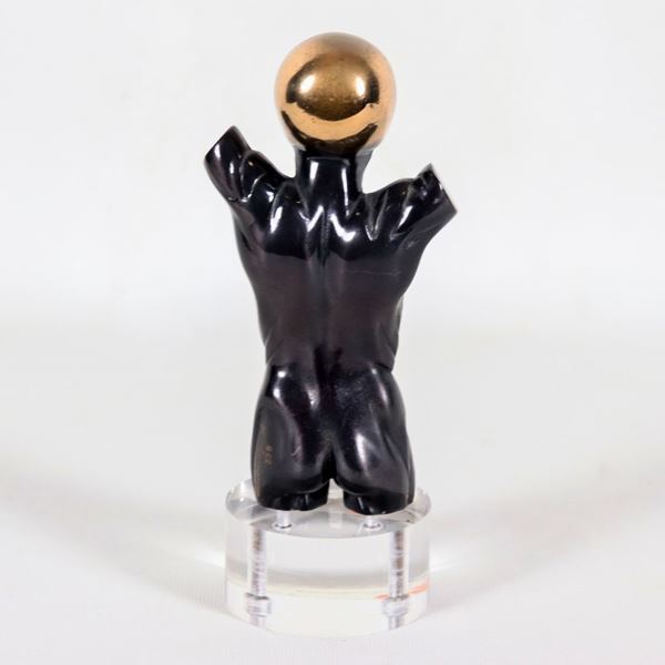 "Torso maschile", piccola scultura Arte Contemporanea in bronzo brunito e dorato, basetta tonda in plexiglas