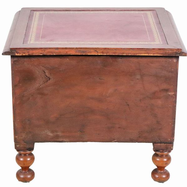 Antica comoda inglese in mogano Epoca Vittoriana, con piano alzabile e all'interno tazza in ceramica bianca con coperchio, base estraibile con [..]
