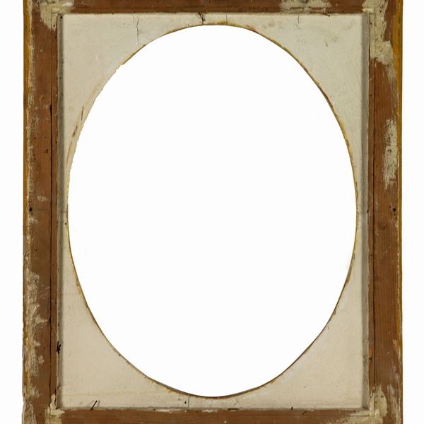 Antica cornice ovale di linea Luigi XVI in legno dorato e intagliato a motivi floreali, qualche mancanza