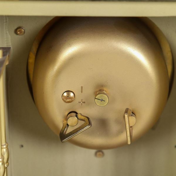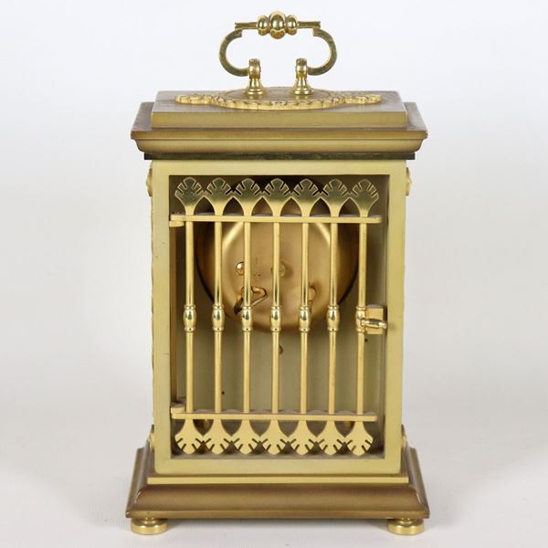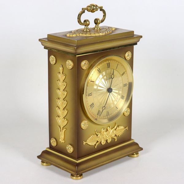 Cappuccina in bronzo dorato e cesellato a motivi Impero, quadrante firmato Le Castel-Swiss