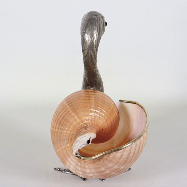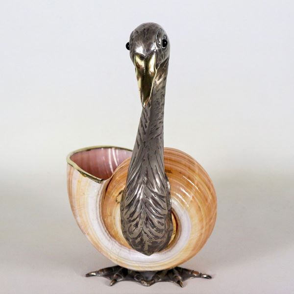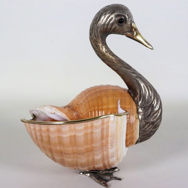 "Cigno", scultura firmata dalla Designer Gabriella Binazzi - Firenze, realizzata con conchiglia, zampe e collo rivestiti in argento