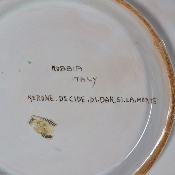 Coppia di piatti da parata in maiolica lustrata Gualdo Tadino, marcati Luca della Robbia, interamente decorati e variopinti con al centro scene [..]