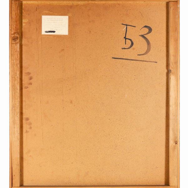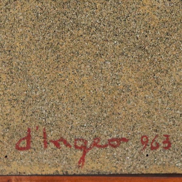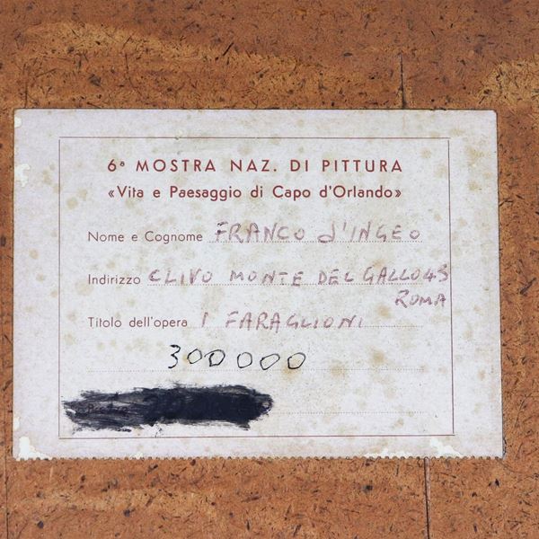 Firmato e datato 1963. "I Faraglioni", dipinto ad olio su masonite