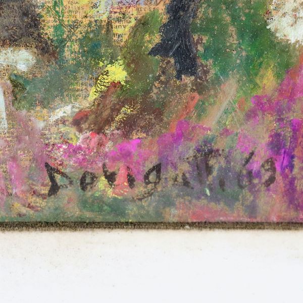 Firmato. "Paesaggio in Catalogna", dipinto ad olio su cartone pressato
