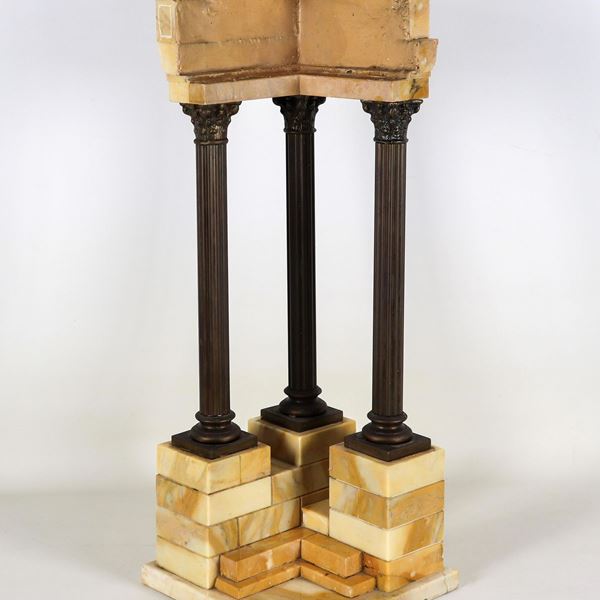 "Il Tempio di Vespasiano e Tito", modello in marmo giallo con colonne in bronzo patinato