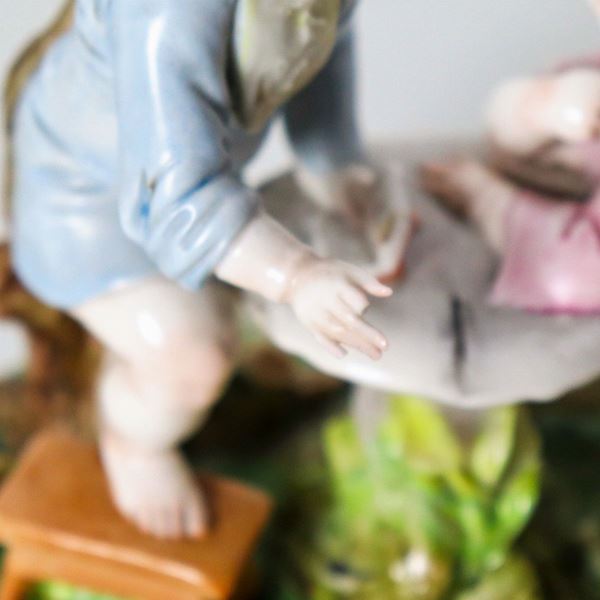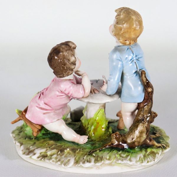 Piccolo gruppo "Bambini che giocano" in porcellana policroma Capodimonte, lievi mancanze