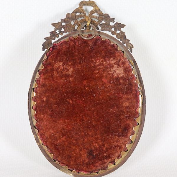 "Ritratto di vecchia contadina", antica miniatura ovale dipinta, Inizio XIX Secolo