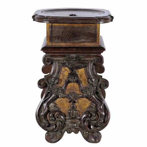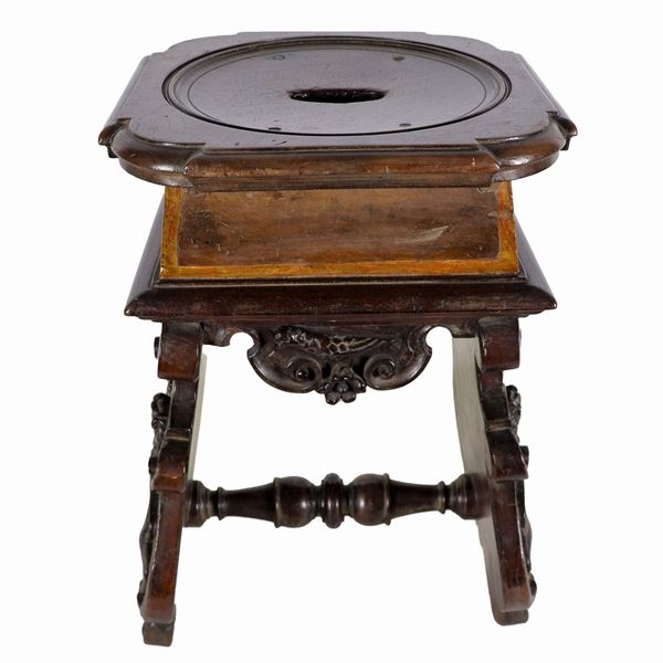 Sgabello in noce di linea Luigi XIV, con gambe ad asso di coppe interamente intagliate a motivi di foglie d'acanto