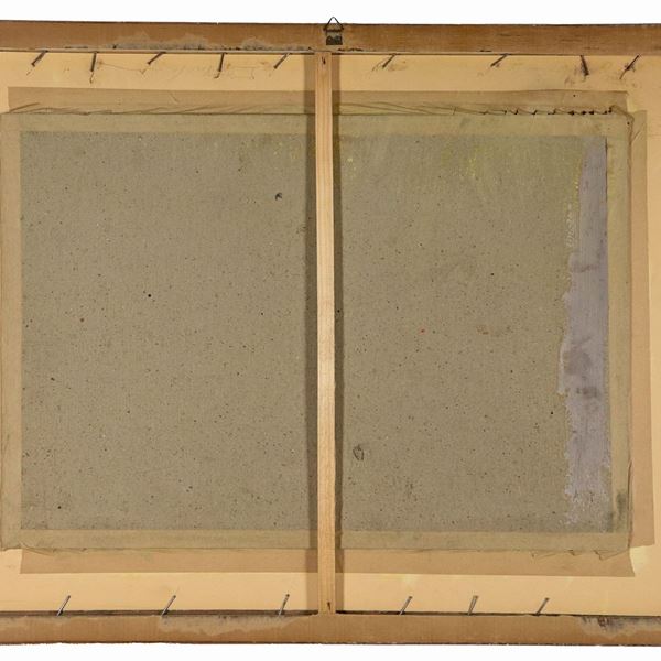 Firmato e datato 1944. "Veduta dei tetti di Roma al tramonto", dipinto ad olio
