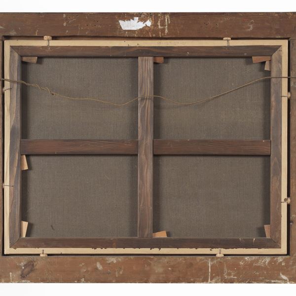 Seguace di. 'Paesaggio con la sosta dei contadini, ponte con fiume e borgo sullo sfondo', dipinto ad olio su tela di ottima realizzazione pit [..]