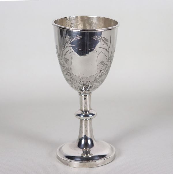 Antica coppa a calice in argento cinese con incisioni floreali orientali, gr. 240