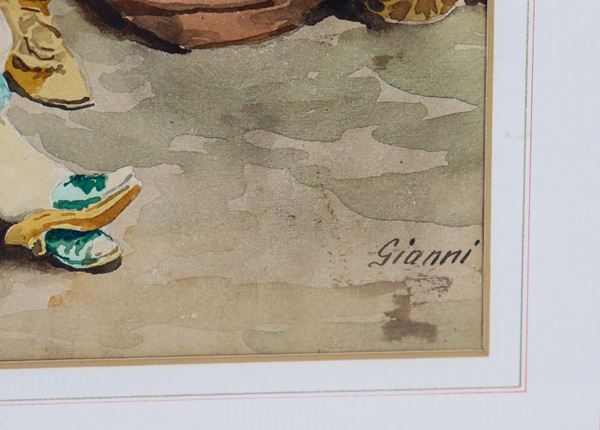 Firmato. "Serenata nella locanda", luminoso acquarello su carta