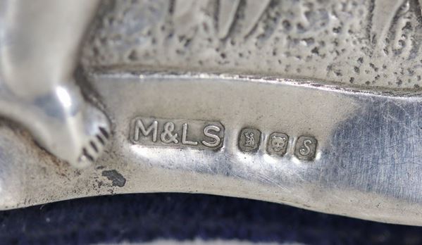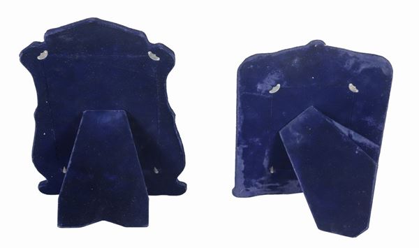 Lotto di due antiche cornici portaritratti inglesi Giorgio V, in argento cesellato e sbalzato a rilievo a motivi di allegorie di putti e volute [..]