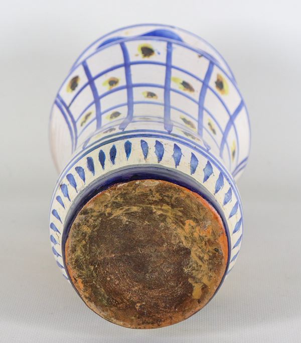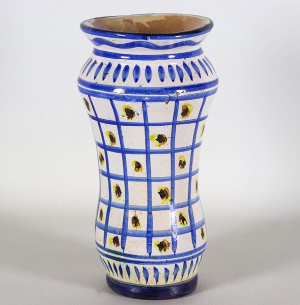 Albarello in maiolica italiana con decorazione policroma "Basilica con campanile"