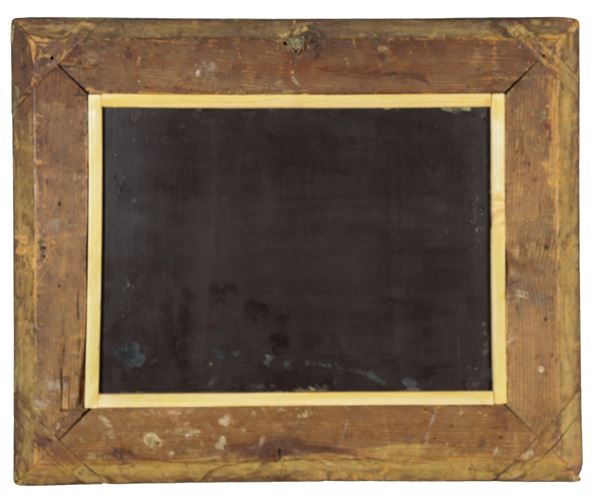 Antica cornice francese in legno dorato e intagliato a motivi di palmette, all'interno specchio al mercurio