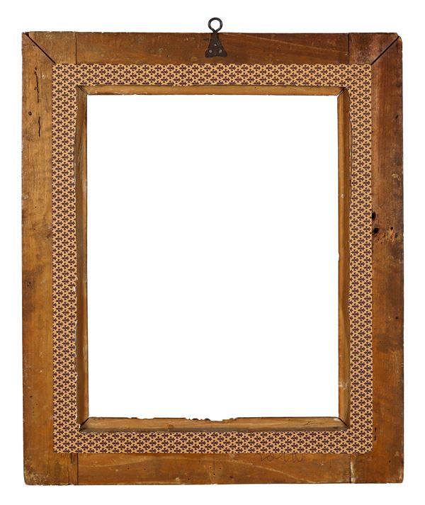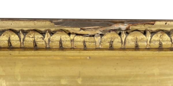 Antica cornice toscana a "cassetta" Epoca Impero, in legno dorato e intagliato. Un battente presenta mancanza