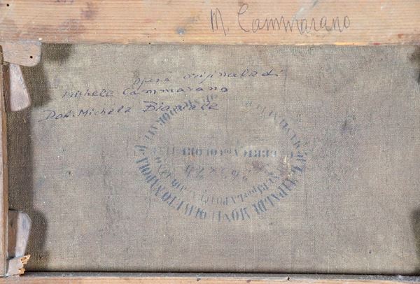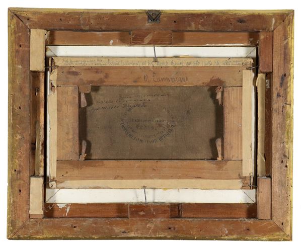 Firmato. "Paesaggio con ponte e contadina", piccolo dipinto ad olio su tela. Sul retro della tela autentica del Prof. Michele Biancale (Sora [..]