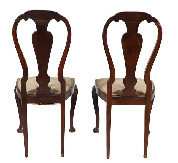 Coppia di antiche sedie in noce di linea Luigi XV, con schienali alti a cabriolet e quattro gambe ricurve