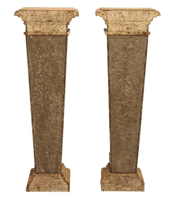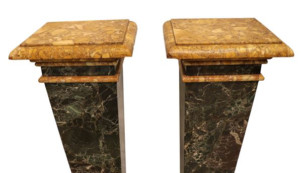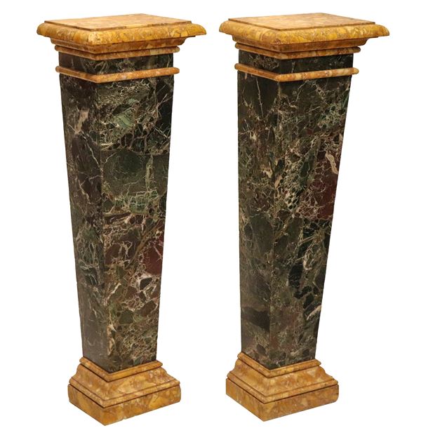 Coppia di erme in marmo giallo antico e bianco e nero d'Aquitania. Manifattura Fine XIX - Inizio XX Secolo