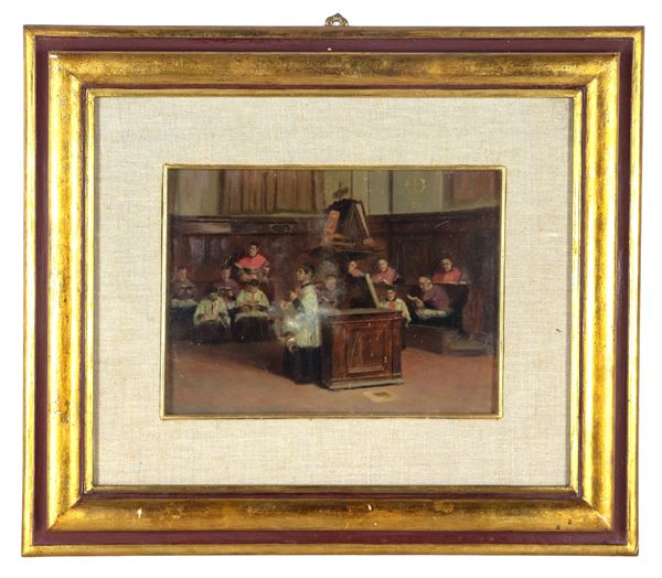 Attribuito. "La scuola dei chierici rossi", piccolo dipinto ad olio su tavoletta
