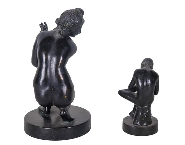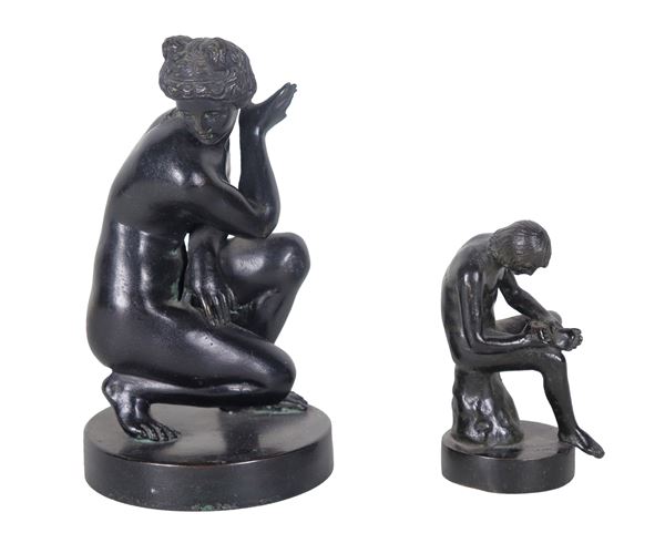 Lotto di due piccole sculture in bronzo ”Venere e Discobolo"