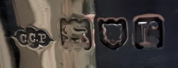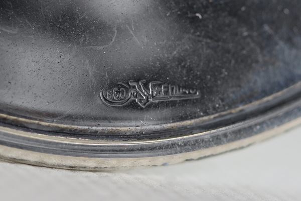 Lotto di due vasetti portarosa in argento cesellato e sbalzato, un vasetto reca Bolli Londra 1932, gr. 310