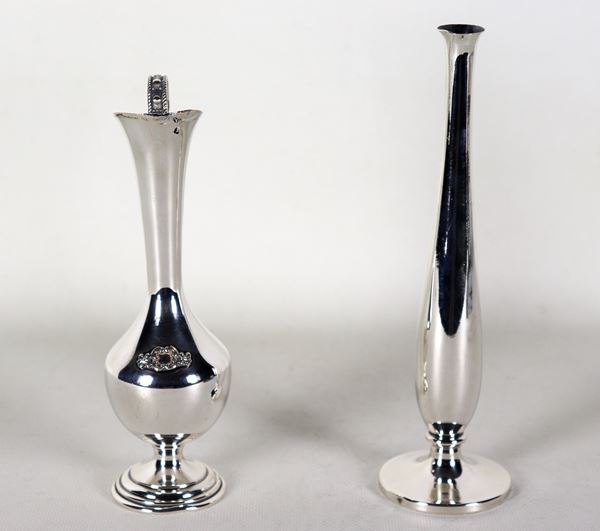 Lotto in argento cesellato di un'anforetta e un vasetto porta rosa, gr. 225
