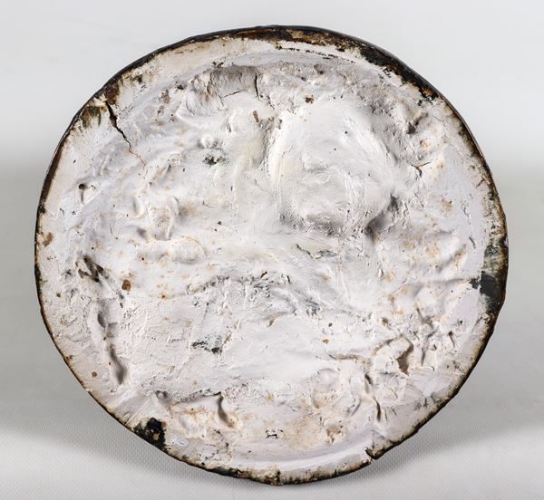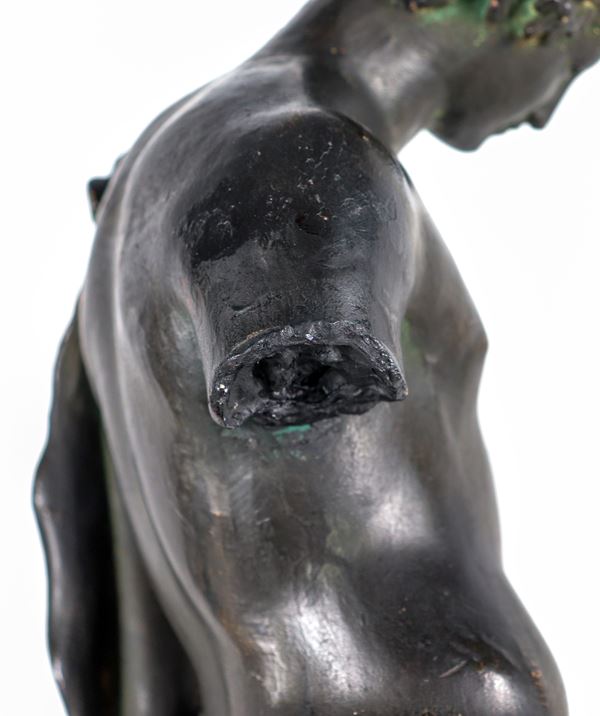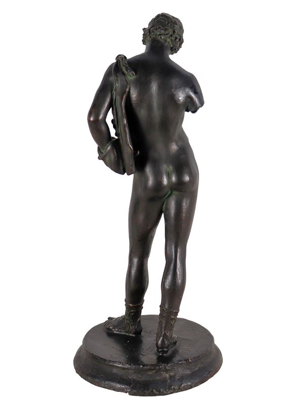 "Narciso", scultura in gesso patinato a finto bronzo con base circolare