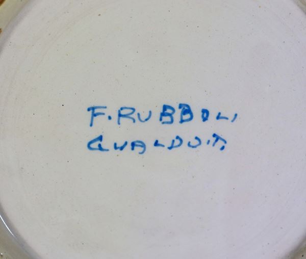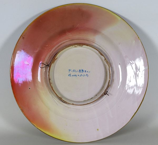 Piatto da parata in maiolica lustrata Gualdo Tadino - Rubboli, al centro "Soldato con elmo"