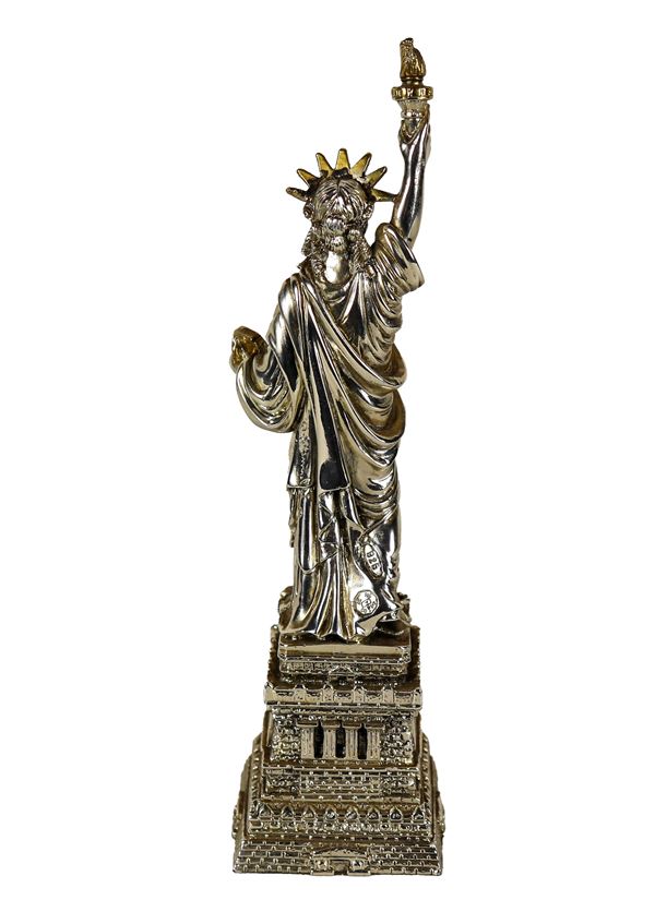 Piccola scultura "La Statua della Libertà" rivestita con argento Titolo 925, peso dell'argento gr. 110 circa
