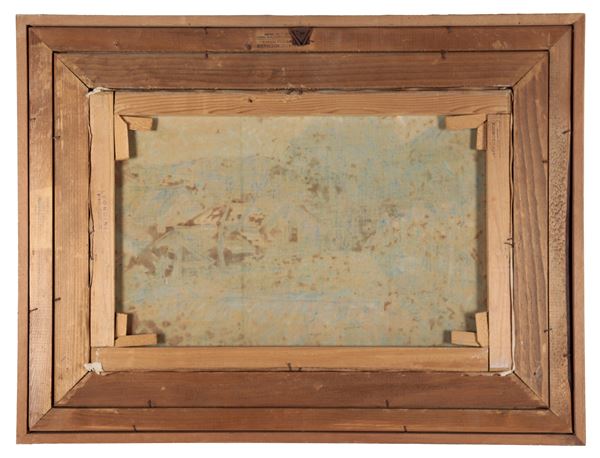 "Paesaggio collinare con case contadine", dipinto ad olio su tela