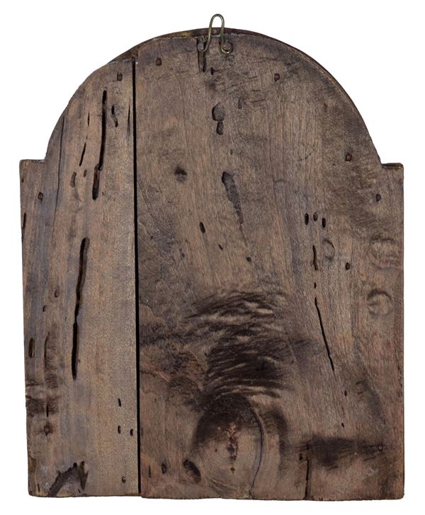 "Madonna con Bambino e San Francesco di Paola" piccolo dipinto ad olio su tela a sesto ovale