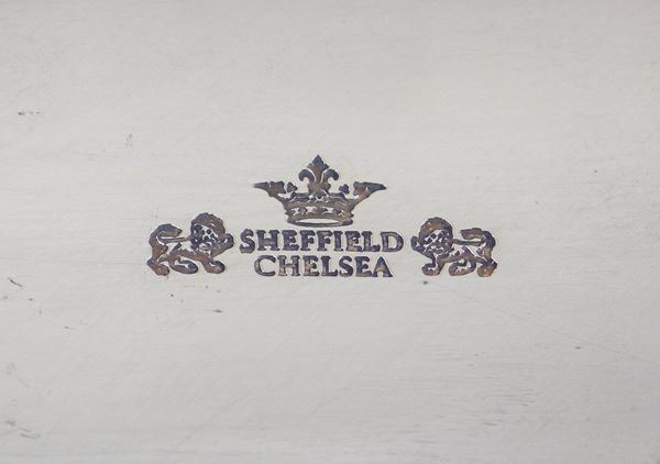 Portacarte inglese da scrivania in sheffield sbalzato e cesellato