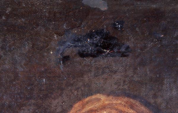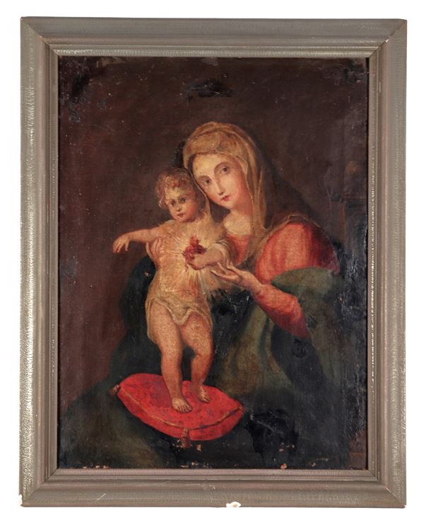 “Madonna con Bambino e Sacro Cuore”, dipinto ad olio su tela, lieve difetto alla tela