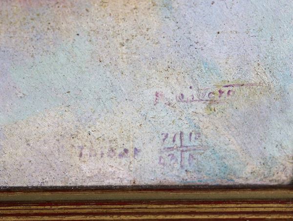 Firmati. "Ritratto di bimba" e "Calle a Venezia", lotto di un piccolo dipinto ad olio su tavoletta e un piccolo acquarello su carta