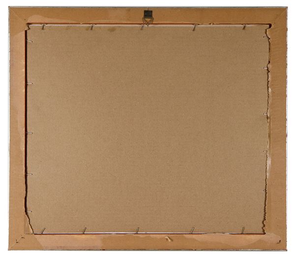cornice in legno argentato e passepartout nero, cm 24,5 x 30.